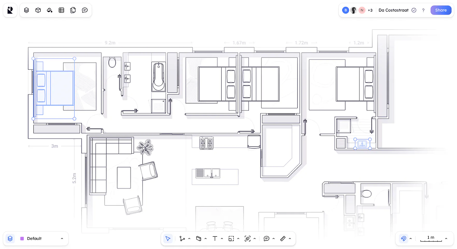 You can easily upload your floor plans as images, PDFs or DWGs and Rayon recognizes the layout, making it editable.