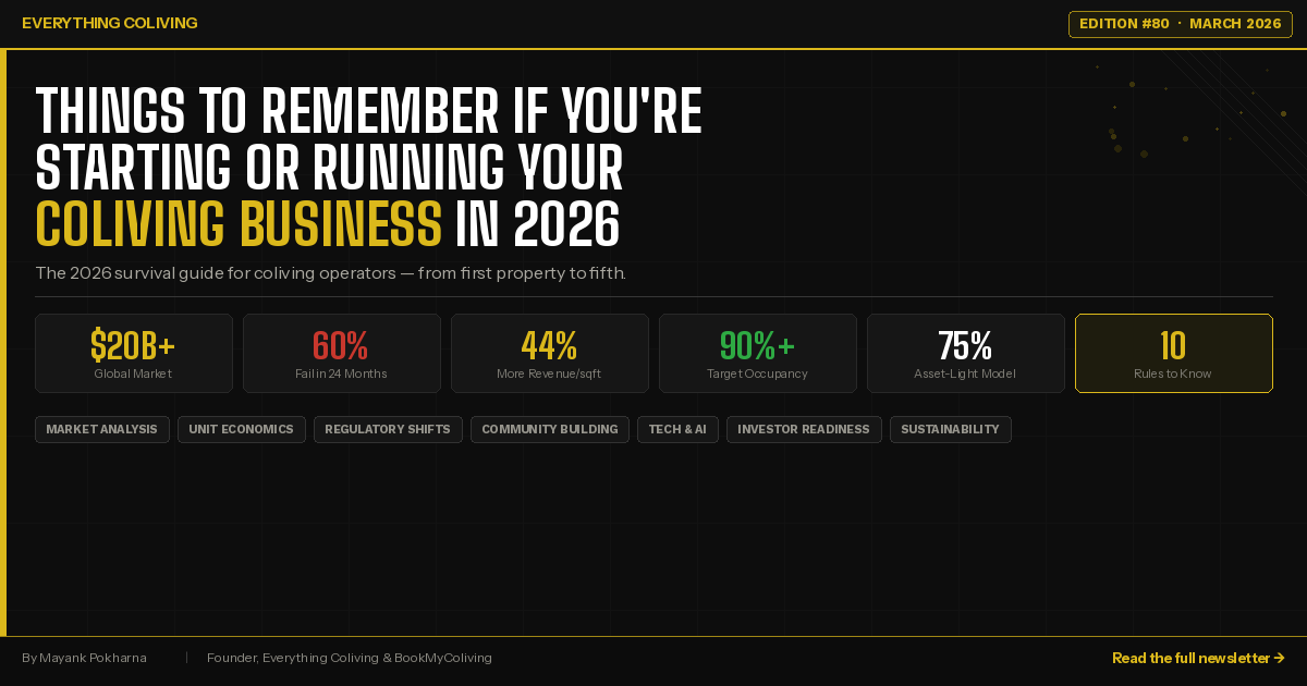 If this was useful, share it with someone starting their coliving journey. And if you are keen to discover verified coliving spaces worldwide, check out BookMyColiving.com; it’s forever free. Got a coliving story, deal, or insight I should cover? Reply to this email or DM me on LinkedIn.